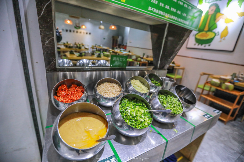 像吃火锅一样,自助小料自选,无线可续,麻将、腐乳、香菜、香葱、酱油、米椒、果仁碎、还有青柠,如果不知道要哪种口味,可以让小妹帮忙调制一份“最嗲调料”。