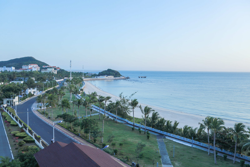 躺在躺椅上,眼前应了那句“面朝大海,春暖花开”,从上面俯瞰,整个海湾呈现U字形状,左边远处依稀可见 亚龙湾 ,这里没有人潮如织的 亚龙湾 ,整个沙滩上的游人不过20个,稀少的人烟,仿佛包场一般,可以肆意的玩水嬉戏,分为游泳区和礁石区,游泳区沙滩细腻,午后在阳光的照射下,沙滩还有淡淡的粉色,不用出国就能看粉色沙滩了,这里真的是太美了。