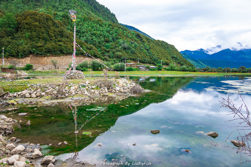 在这座错高村,布地区唯一完整地保持了工布藏族传统村落布局、民居建筑风格、习俗、文化和信仰的村落。湖水清澈见底,雪山倒映其中,沙鸥浮游湖面,牛马饮水吃草,错高村与强噶村为伴。