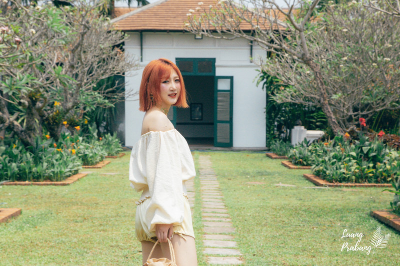 一只水牛在河边草坪上闲庭信步,是酒店散养的,听说它身上还有一段传奇故事,不知它看着依山傍水的绝佳视野,是否感到怡然自得。河畔超大的花园如同在欧式的庄园一样,拿出了我带来的最浮夸的一条裙子,坐在大树下的长椅上,直面湄公河,每一处都有景致。“不拍尽兴我就不走了……”
