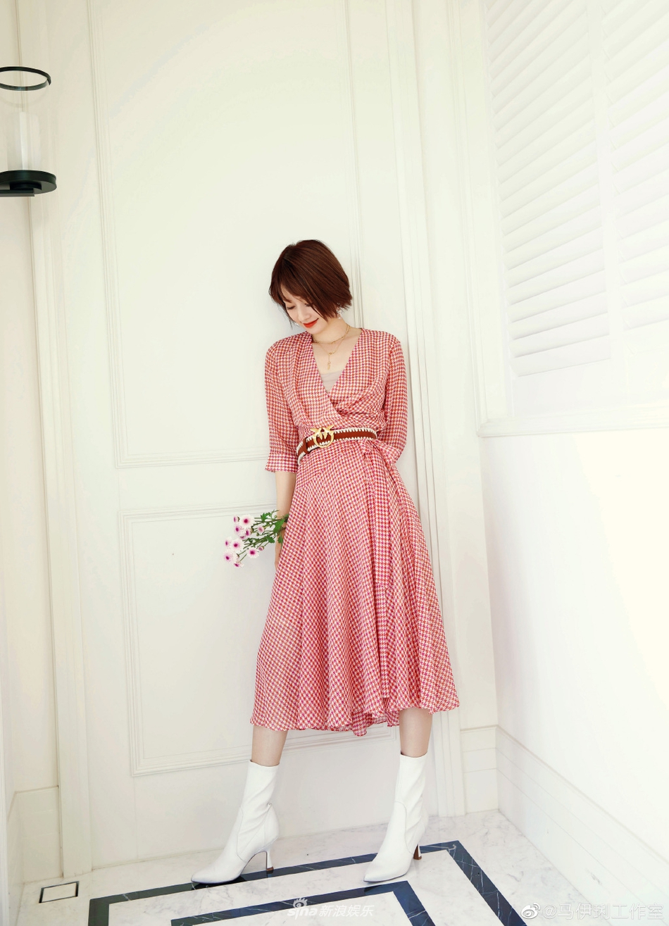 44岁马伊琍尝试甜美风 穿红色格子裙手持鲜花分外迷人[7P]