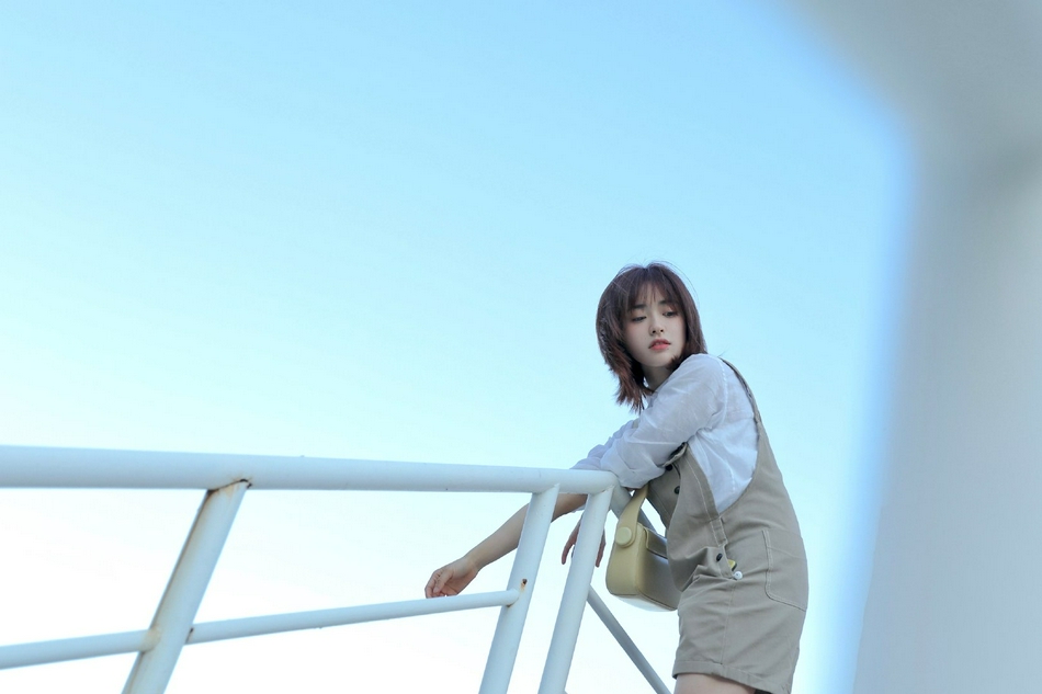 沈月夏日天台治愈系大片 白衬衫背带裤尽显甜美可爱[10P]