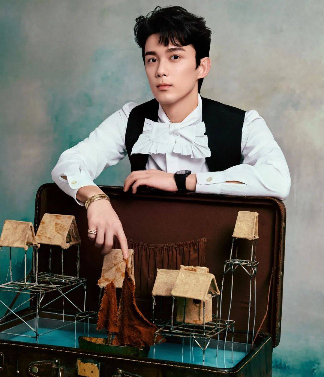 这种系带领结主打的就是矜贵优雅范,像是檀健次全套的Valentino这身,格纹西服套装配上丝缎领结,戴上金丝眼镜,复古公子来了。