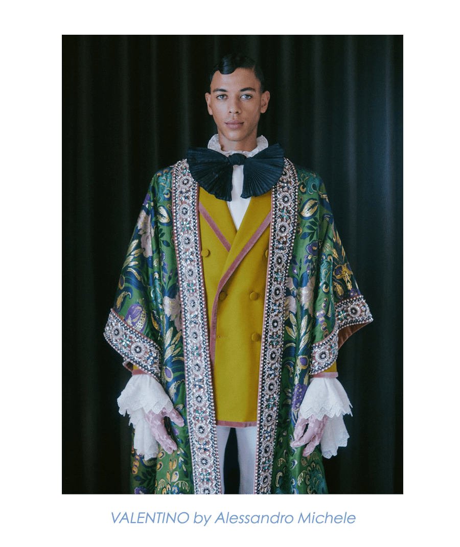 当然,这场关于颈间的风格实验并非只限男装。CHANEL、MAISON MARGIELA、VALENTINO等在秀场上也频频使用颇具特色的脖颈装饰——立体缎面蝴蝶结、珍珠链缠绕式围脖、刺绣头巾披搭,这些都指向一个清晰的设计趋势:脖颈不再只是项链的舞台,而是一块等待被激活的时尚领域。