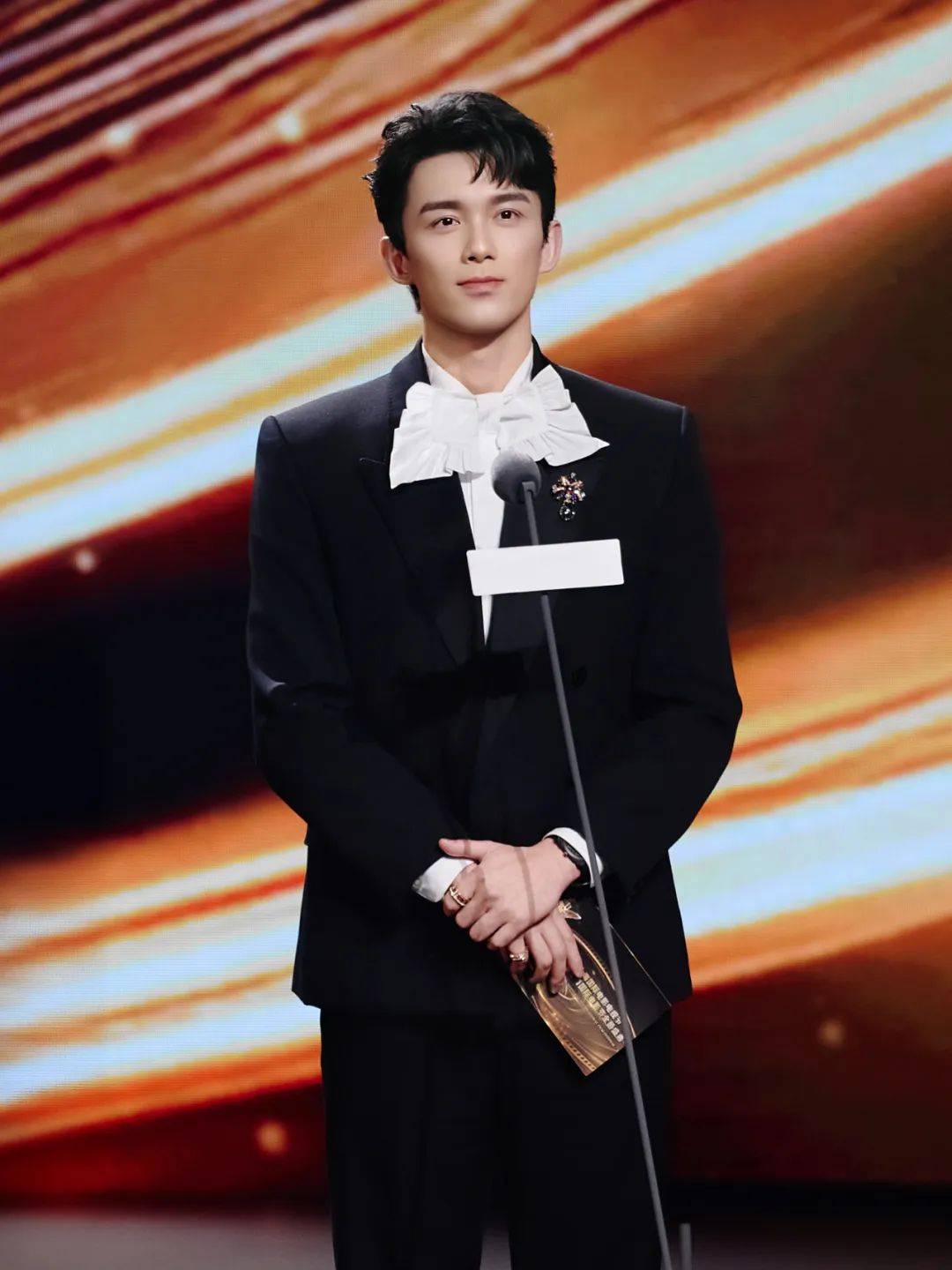 明星演绎推动流行:吴磊在公开场合身着Saint Laurent 2025春夏男士系列黑色礼服,搭配荷叶边花式领结白衬衫,以“优雅矜贵的小王子风范”重新定义了正装搭配,将领结从附属配饰升级为造型核心。