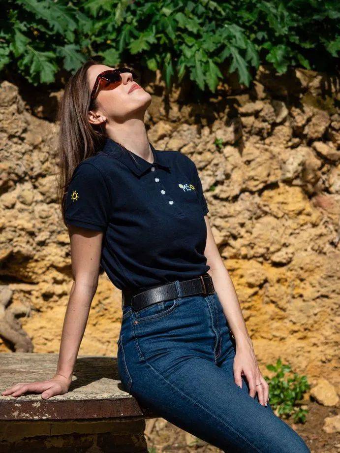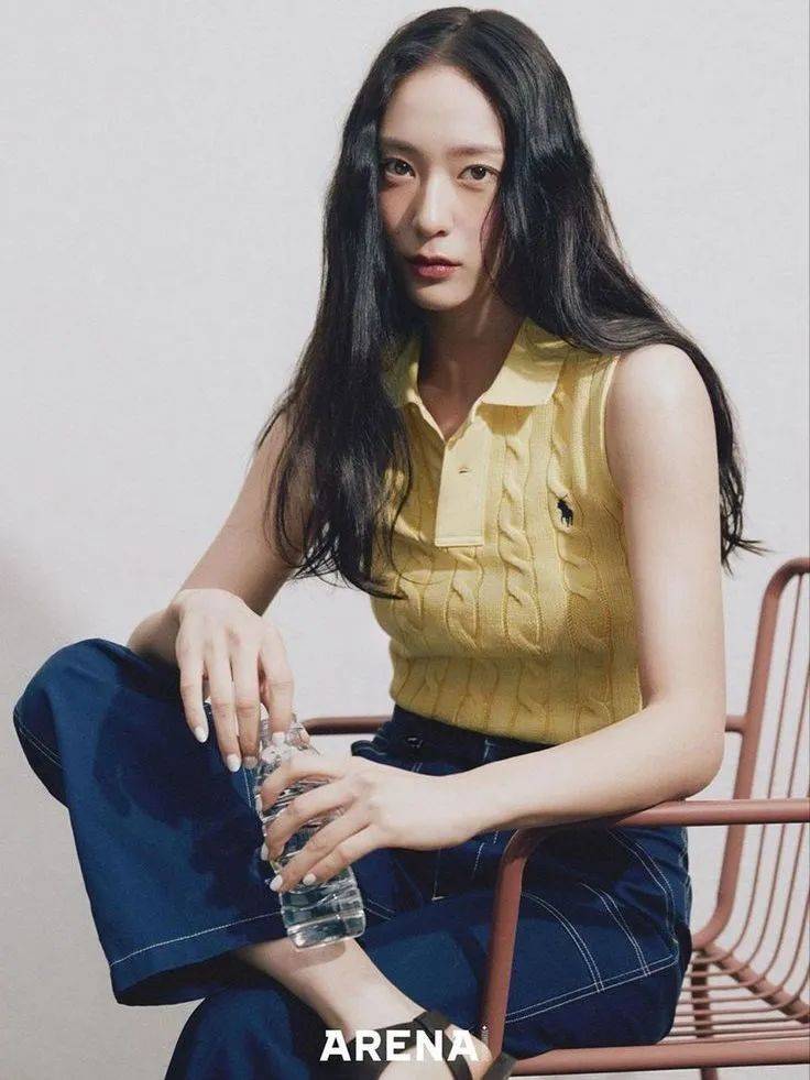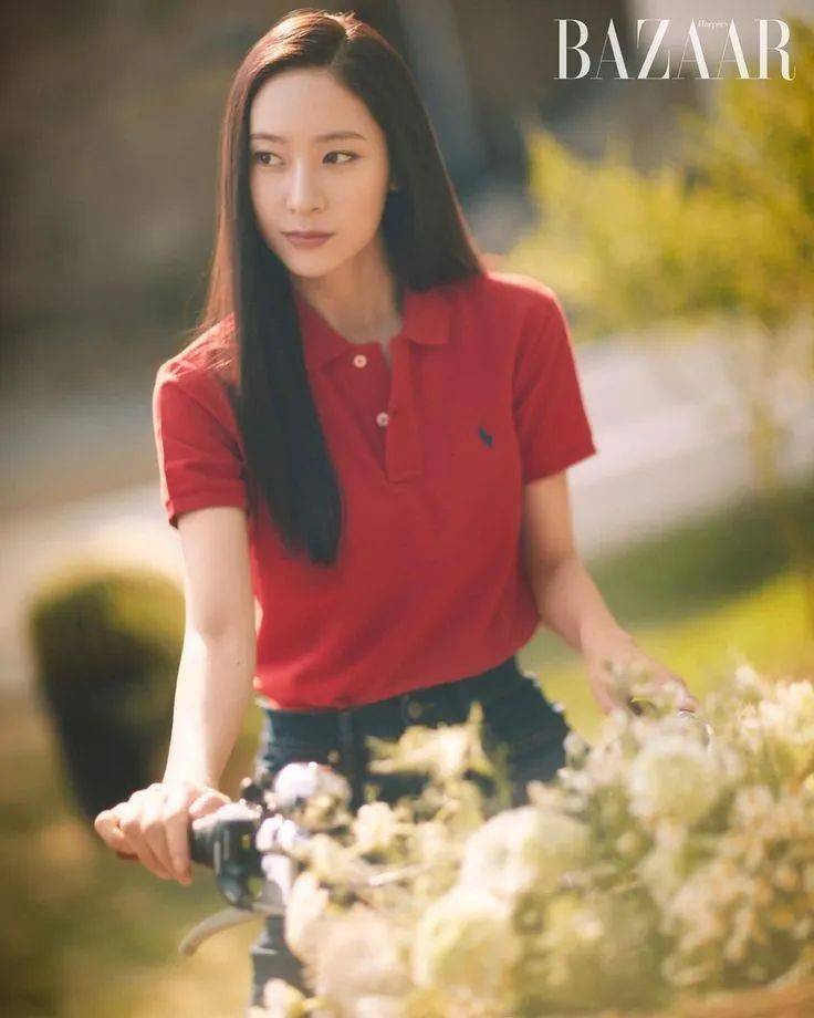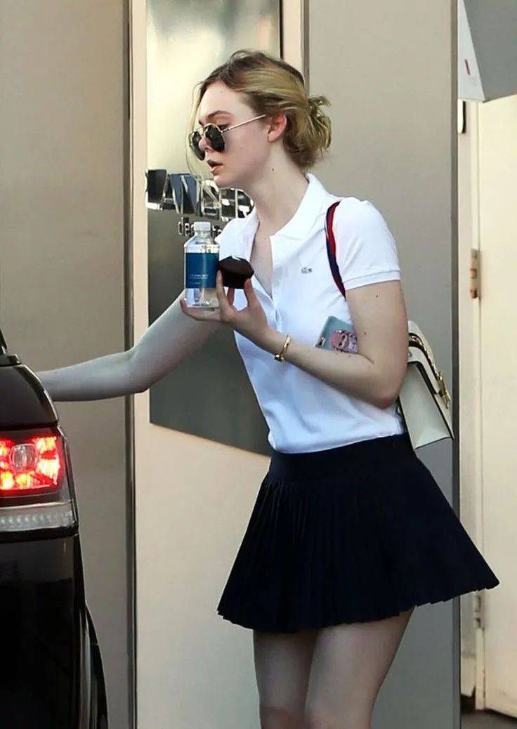减龄技巧:纯白色Polo衫搭配高腰牛仔裤,扎起高马尾,利用牛仔裤“天生减龄”属性,视觉年轻5-10岁。