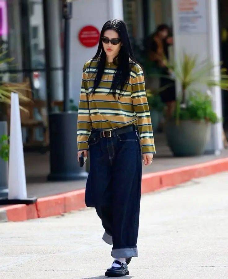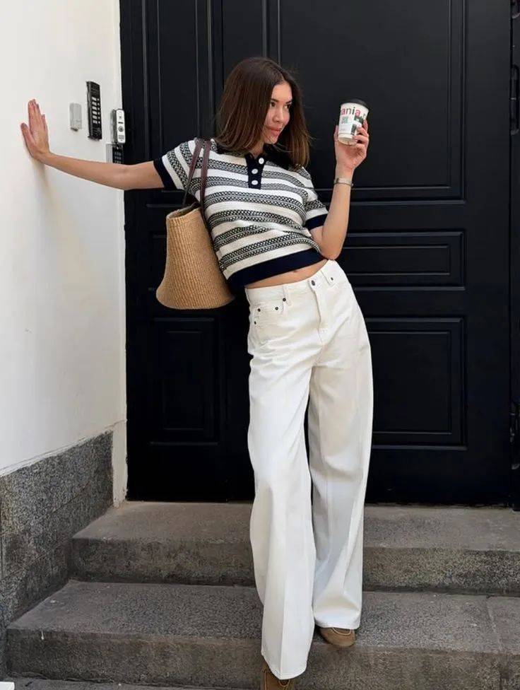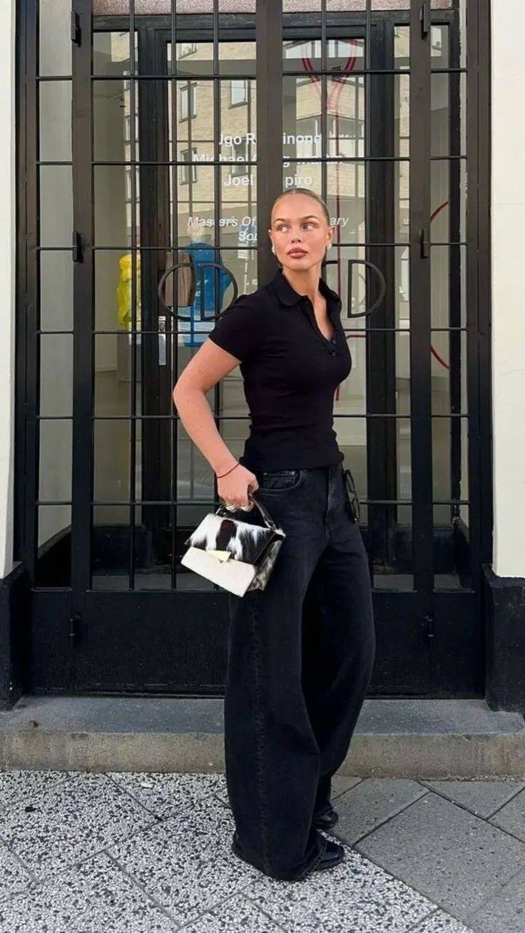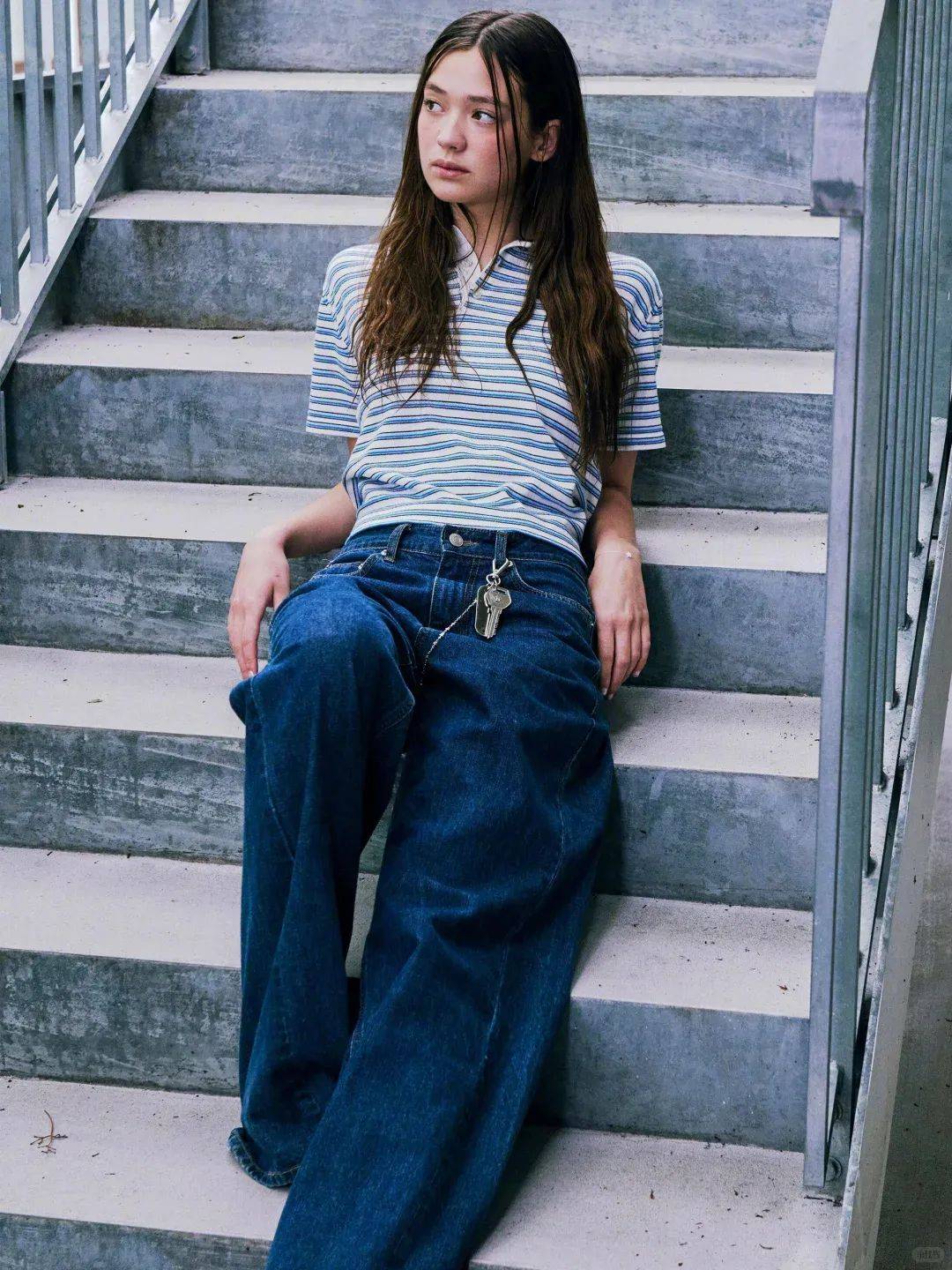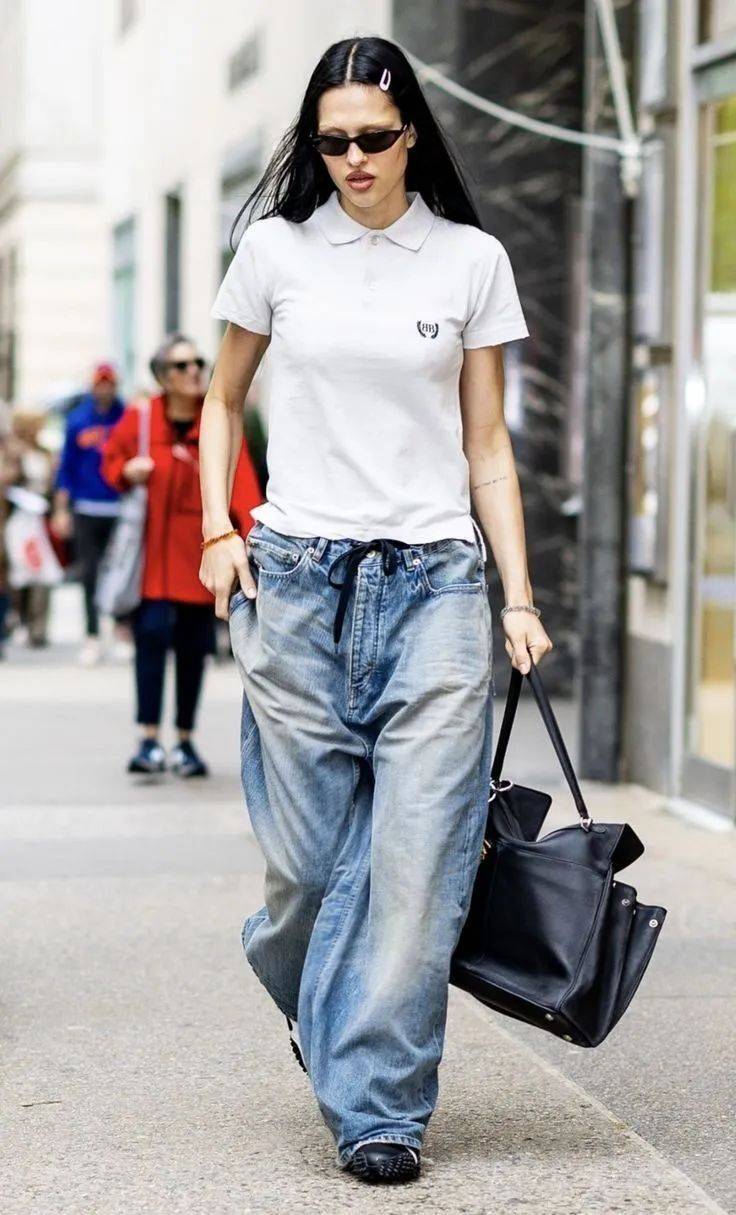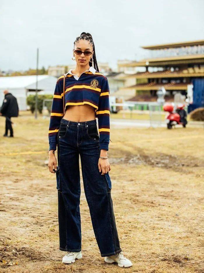 宽腿牛仔裤    短款Polo衫露腰线,卷裤脚    街头潮流、周末出游