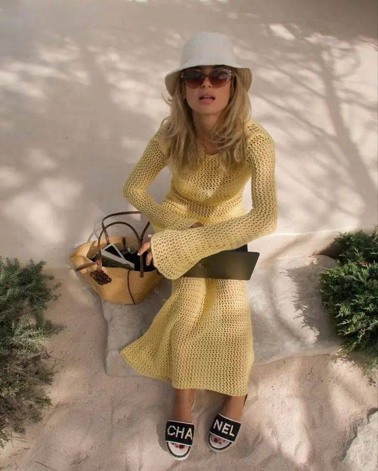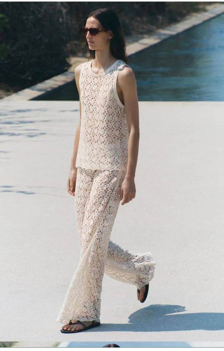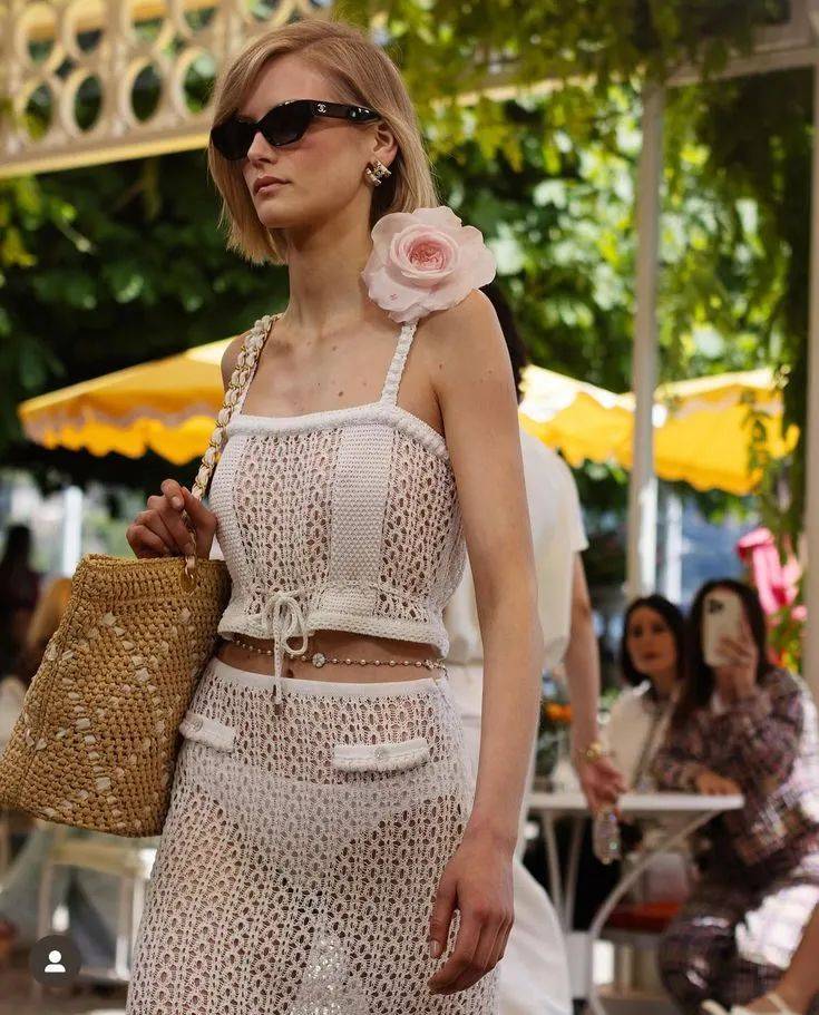 可以发现看起来轻盈带有凉感的钩针单品,多是浅色调,干净、柔和、耐看,极适合阳光与绿意交织的夏日氛围。