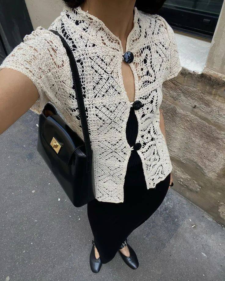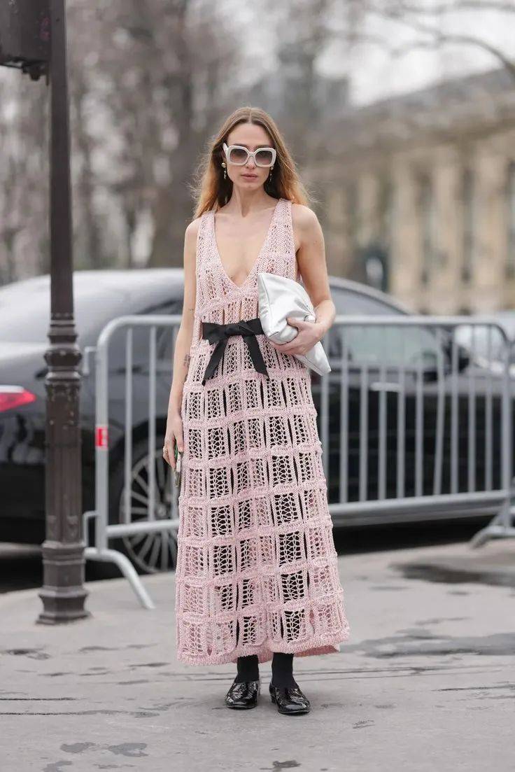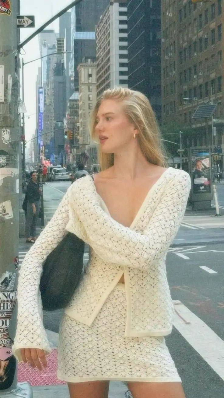 此外,浅色也让钩针单品看起来更“轻”,避免了厚重或过于手工感的视觉负担。