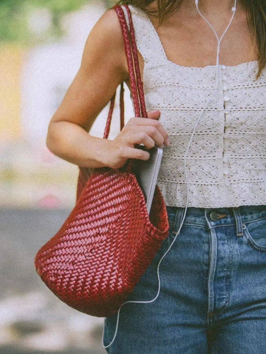 与牛仔裤搭配,或是比较自然肌理和色调的单品组合,可演绎松弛系或法式田园风。