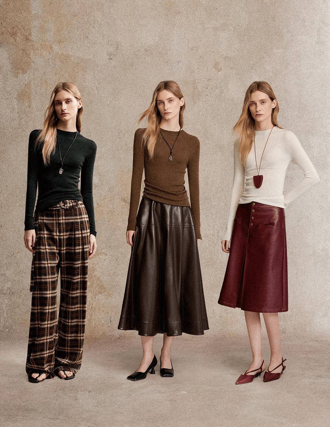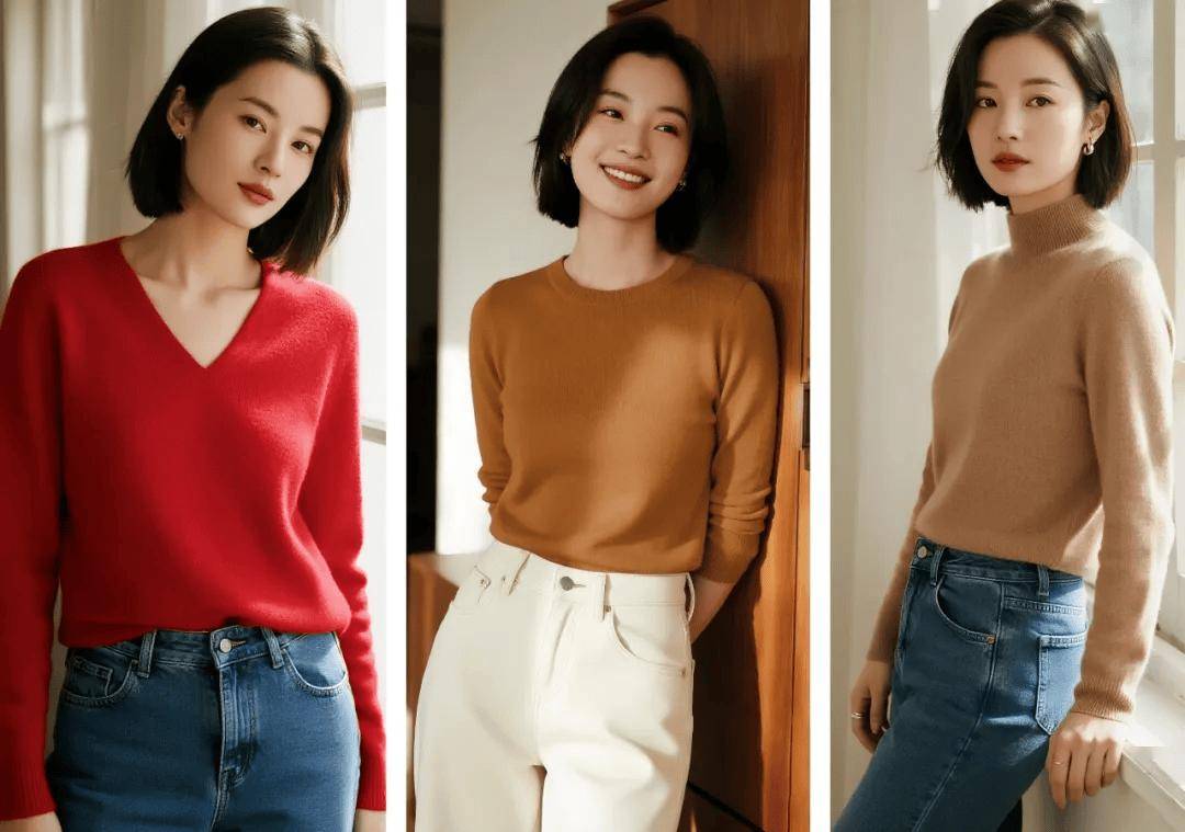 在选择冬季打底衫时,我们可以从颜色、款式、材质等多个方面入手。红色、金色等喜庆色彩是穿搭的理想选择,它们不仅符合节日气氛,还能让你在人群中轻松脱颖而出;而如果你已经备好了吸睛的彩色外套,那么这两年很热门的灰色、棕色打底衫会是你的搭配帮手,可以更好平衡造型,提升造型的质感,让你的搭配看起来又美又贵~