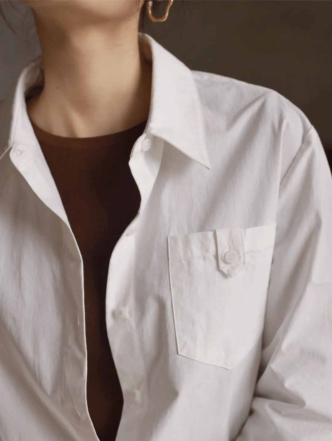 版型讲究平衡:女款线条做了显瘦处理,V领/圆领/半高领多款可选;男款肩部线条流畅,留有余量不紧绷,能作为内搭或单穿,搭配大衣、西装或夹克皆宜。 2. 初棉 零压假两件肌底舒绒长袖T ✅ 撞色假两件|肌底舒绒罗纹 🌿 单穿叠穿|通勤日常 这款假两件T恤用撞色设计打造层次感,兼具舒适与造型感,是秋冬衣橱中实穿又有设计感的单品。