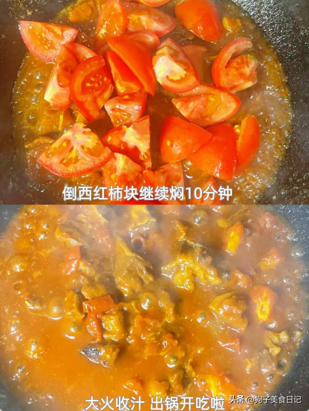 3.番茄炖牛腩 材料:适量番茄,适量牛腩,适量生姜,大蒜,适量冰糖,陈醋,适量盐,蚝油,生抽,