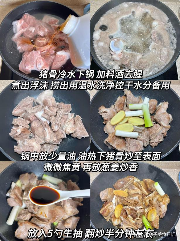5.猪骨白菜煲 材料:2斤猪骨,口蘑,白菜,小米辣,生姜,大葱,干香菇,适量白糖,适量盐。