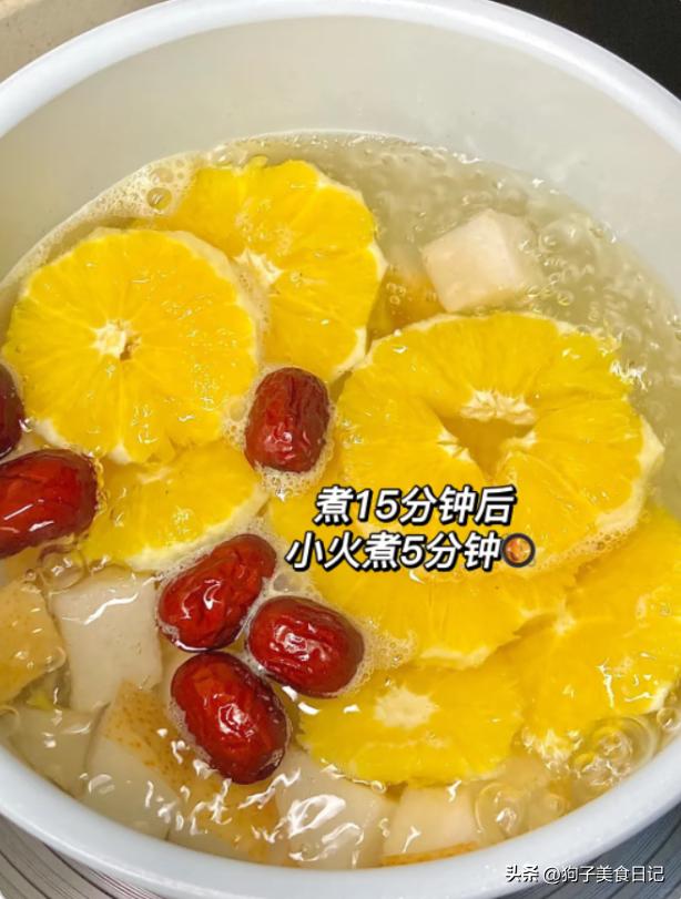 雪梨热橙汤 材料:一个橙子,一个雪梨,适量红枣,适量冰糖。