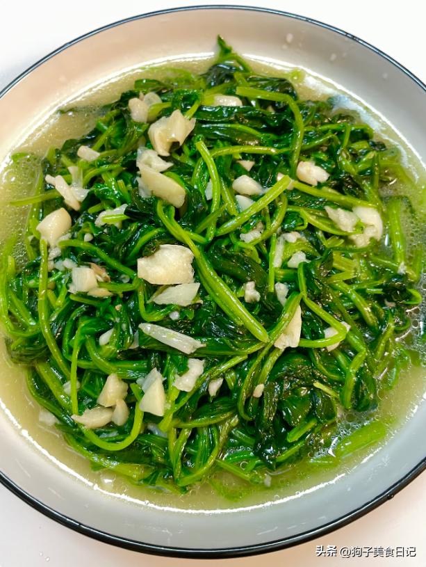 清炒菠菜 材料:一把菠菜,适量大蒜末,适量盐,适量鸡精。