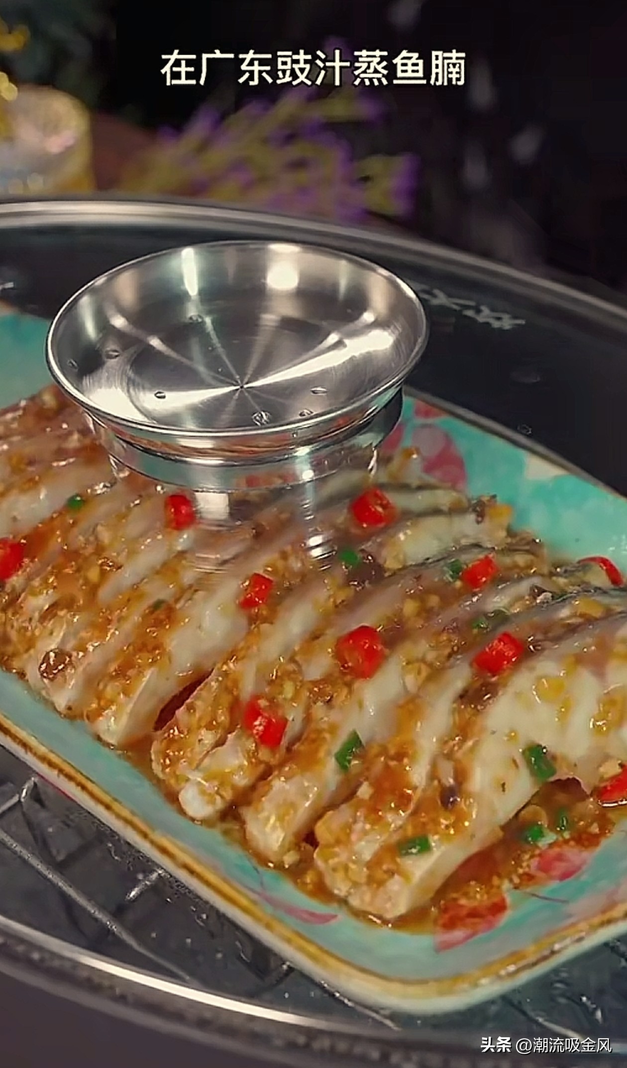 不爱吃鸭肉的都能被这道菜征服!鸭子用老抽腌10分钟,煎出油脂。爆香葱姜蒜、豆豉,放鸭子,淋米酒去腥味,加生抽、蚝油、冰糖,焖煮40分钟(翻面一次),最后收汁。鸭肉入味,酱香十足,配饭能吃三大碗。 第十道:豉汁蒸鱼腩——广东餐桌的常驻嘉宾
