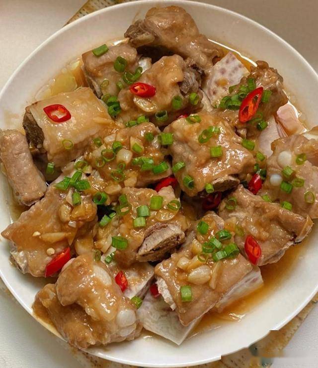 - 做法:排骨腌制后与红薯块一同蒸50分钟。