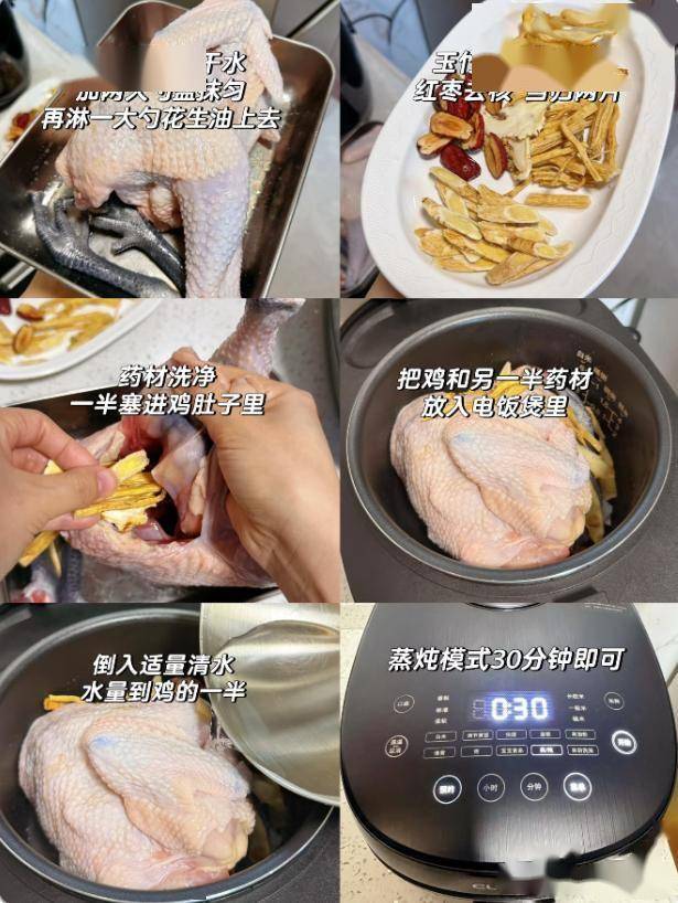 这周吃了一顿暖身菜,这几天身都是暖了,滋补营养不上火 天冷肯定少不了暖身滋补的菜肴,下面分享了5道菜谱,滋补营养不上火,不吃辣椒的不加或者少加就可以了。 1.药膳电饭煲焗鸡 材料:一只鸡,玉竹,北芪,党参,红枣去核,当归,适量盐,一大勺花生油,