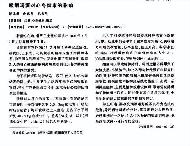 [1]陈玉新,赵讯月,朱雪珍.吸烟喝酒对心身健康的影响[J].临床心身疾病杂志,2003