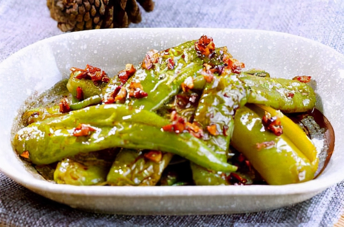 食材:300g青椒、适量蒜蓉、100ml食油、1勺生抽、1勺甜米酒 1元 食盐 做法 1.将青椒洗净,去蒂滤干水备用。 2.蒜粒去外衣切成粒。 3.炒锅烧干水份,将青椒放下锅内慢火煸至起皮。 4.起皮的青椒铲起备用。 5.热油锅将蒜蓉爆香。 6.倒入青椒炒至成虎皮状,食盐生抽及甜米酒调味即可。 韩式豆腐汤