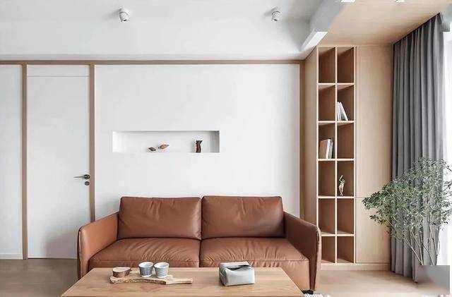 四周虽然都是大白墙,还做了大量留白,却一点不突兀单调; 因为原木风的温润质感中和了空白的清冷。屋里还摆了不少橘黄色的家居摆件,一下子就增添了温暖的氛围,待在这儿浑身都觉得放松。