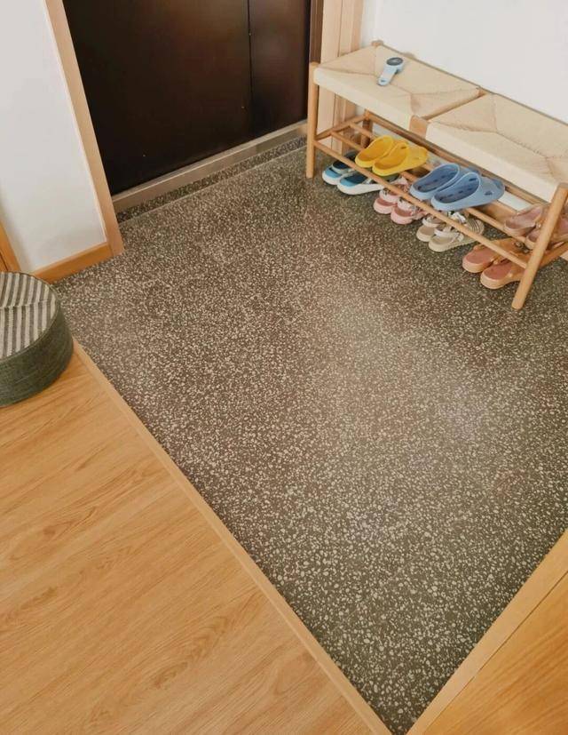 博主还选择了下沉设计,入户地板比客厅矮了 5 公分左右,这样一来,鞋子上带的灰尘就会被挡在玄关,不会带进屋里,打扫起来也省了好多事!