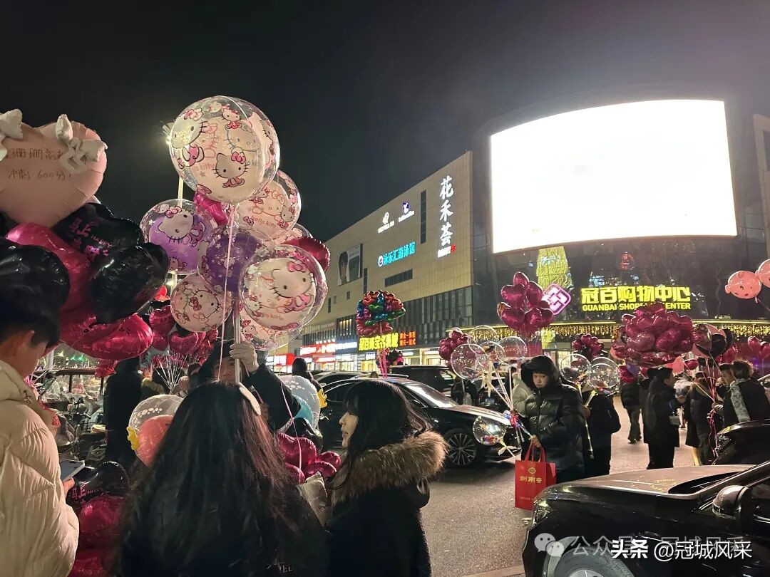 今年的跨年夜也给大家做了一场小小的现场直播,先从冠百出发,到处都是人,路边卖气球的非常多。