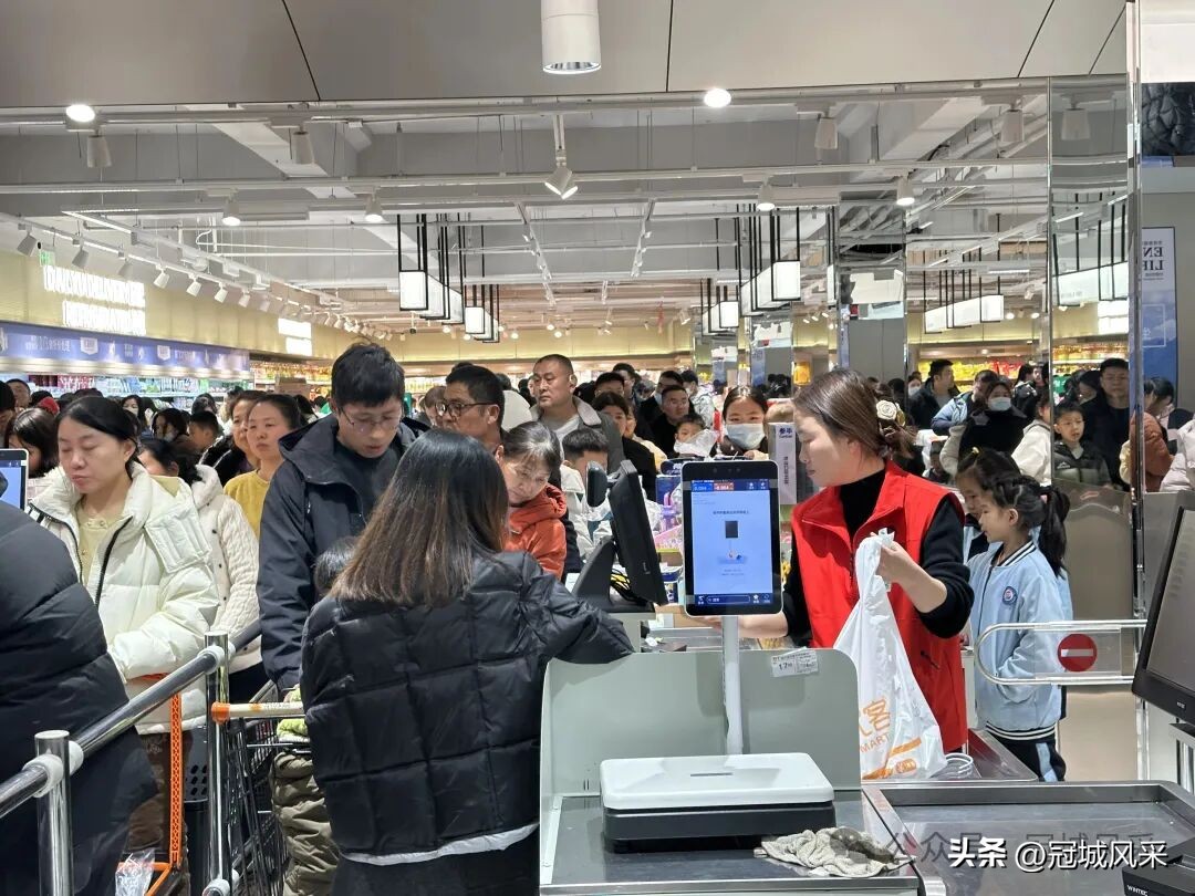 排队结账的人也是人山人海,真的有过年的氛围感了。