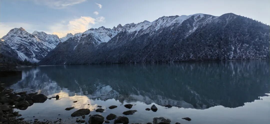 via:往期 冬季的措普沟被白雪覆盖,雪山、森林、湖泊构成如诗如画的冰雪世界。 清晨或傍晚,阳光斜射在终年积雪的山峰上,形成“日照金山”的绝美画面,金色光芒与白雪相互辉映,如梦如幻。