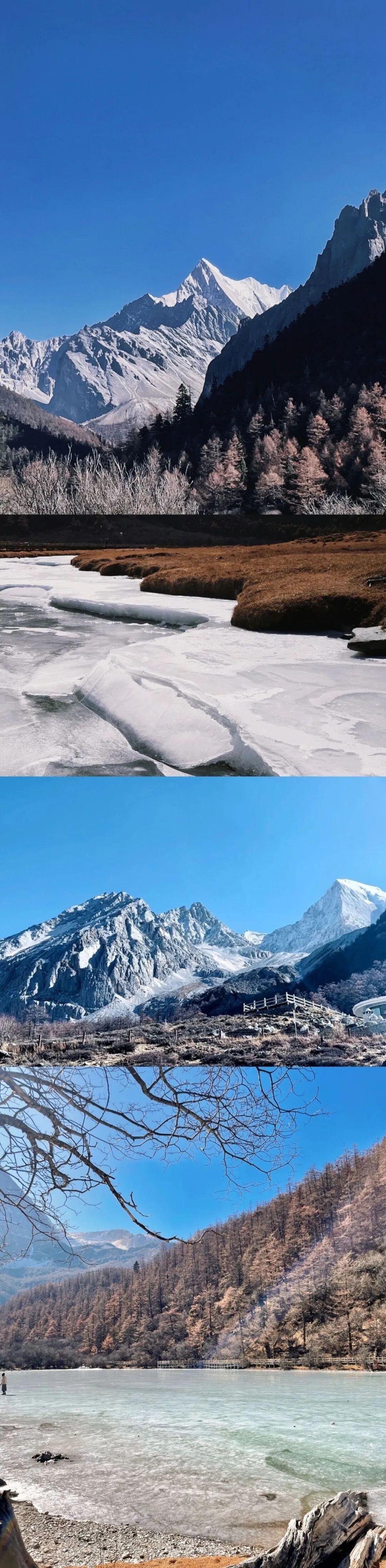 via:甘孜文旅、YanDarkhoIme(小红书) 冬日的海螺沟藏着数不尽的乐趣!追日照金山的绝美盛景,打卡壮阔的冰川奇观,漫步银装素裹的雪山森林,邂逅澄澈如宝石的蓝冰海子,每一步都是惊喜。