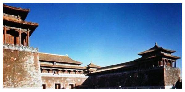 △午门的墙面已经风化,呈现出斑驳的痕迹,周围没有一位游客,场面显得既宁静又庄严,与如今热闹的景象截然不同。