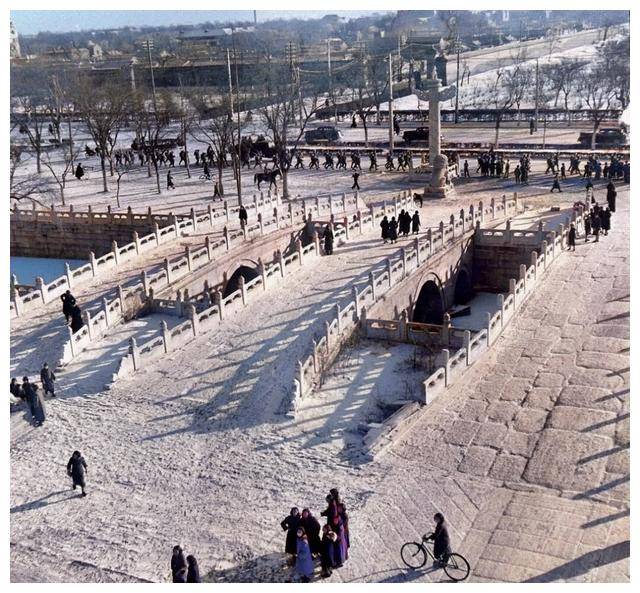 △一场大雪过后,金水桥上的景色被点缀得更具生机,行人驻足观赏,增添了这座古桥的活力。