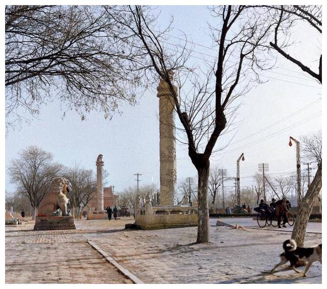 △1945年的华表与旁边的路灯相映成趣,就像是两位跨越时空的老朋友。