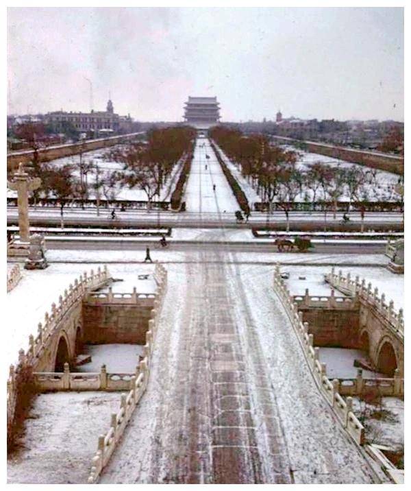 △从另一个角度俯瞰北平城,虽然已有不少西式建筑,但高楼大厦尚未出现,古老的建筑风格依旧与自然和谐相融。