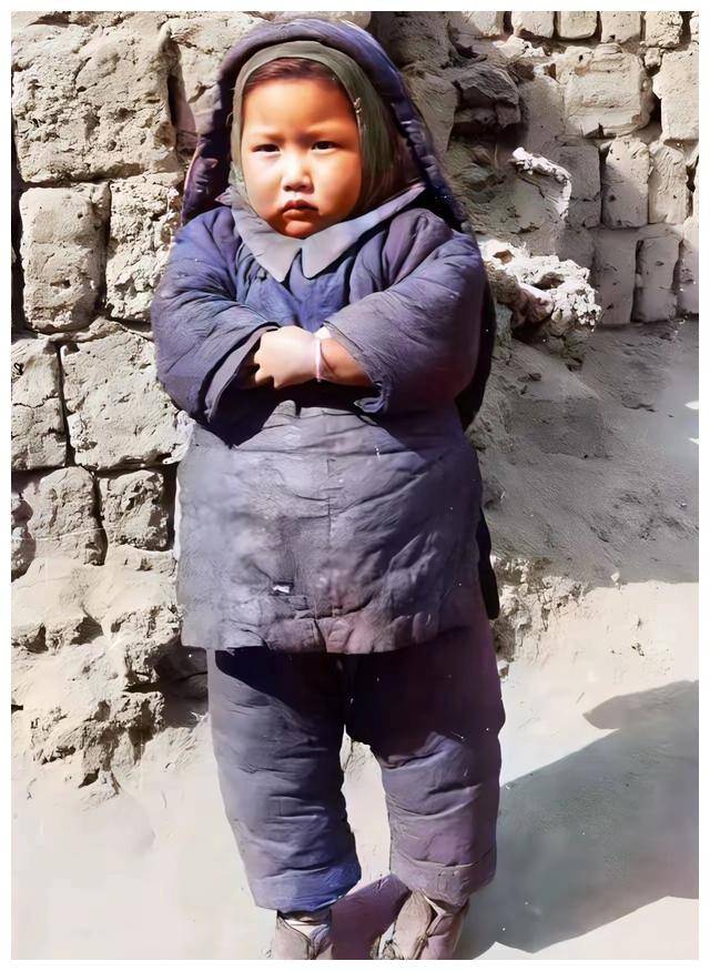 △北平的一位小姑娘,尽管胖嘟嘟的很是可爱,但身上的棉袄显得脏乱不堪。可以想象,她的家庭条件并不宽裕,只能勉强糊口。