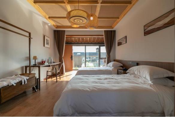 21.恋链轻舍三店(清欢) 民宿共设14间客房,每一间都遵循简约雅致的设计理念,坐拥开阔视野。晨起静观薄雾缭绕,夜半卧听清风呢喃,让身心在自然的怀抱里彻底松弛。这里太适合这样的你:想暂别快节奏的都市生活,想带孩子体验泥土与自然的野趣,想寻一处安静角落与自己对话,想用镜头定格四季流转的田园盛景——来此小住,便是“岁月静好”最直观的模样。 地址:奉贤区柘林镇迎龙村迎立路514、515号 预订电话:021-57597777