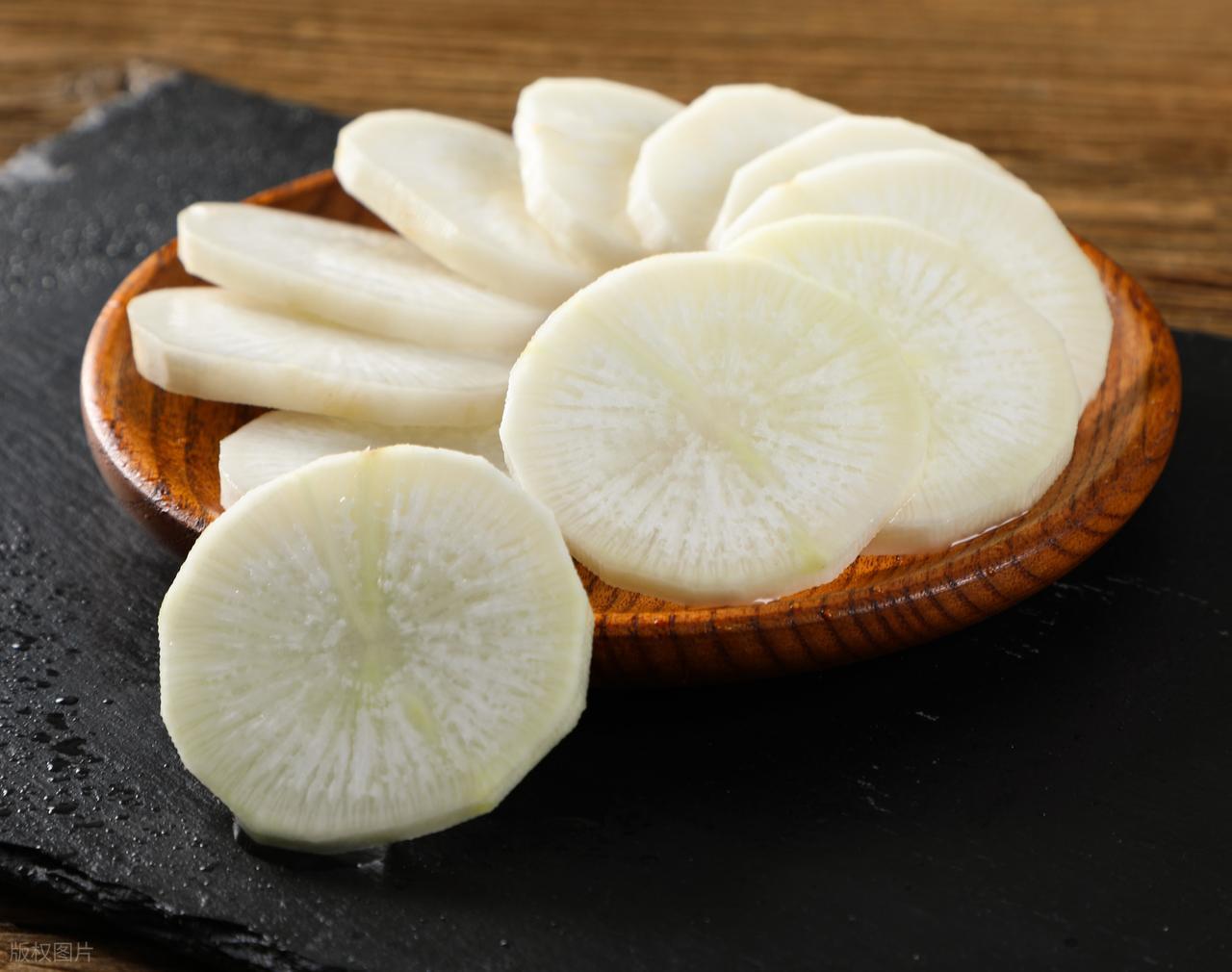 白萝卜 有“地下小人参”之称,清肺消炎利痰。 中医认为“肺气不宣,咳嗽生痰”,白萝卜正好能疏通肺气。 吃法:炖汤、炒菜、榨汁皆可,但脾胃虚寒者不宜空腹食用。