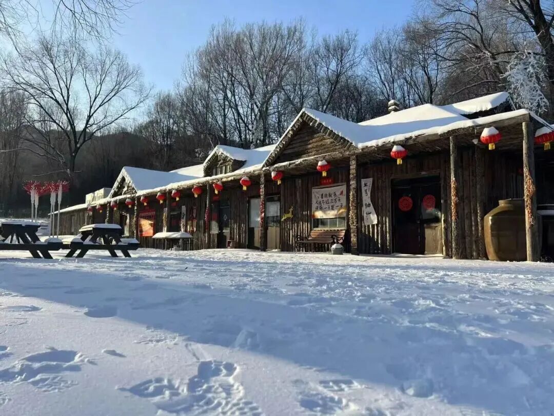 东北木屋式雪屋同步亮相 原木质感搭配皑皑白雪 东北氛围感拉满