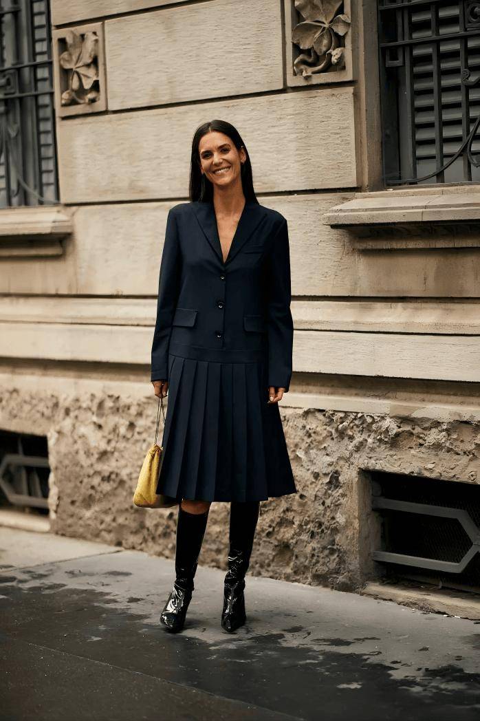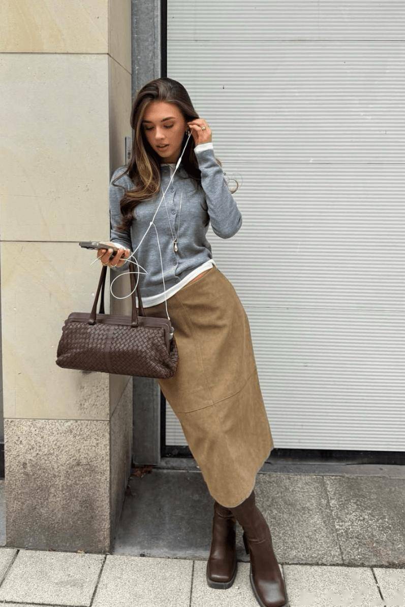 选款要点:垂感极佳的羊毛混纺或半裙或软皮质中长裙是首选,它们抗皱易打理,省心省力。经典的黑色、深灰色等基础色,能与四季鞋或直筒靴轻松呼应,营造沉稳干练的气质。