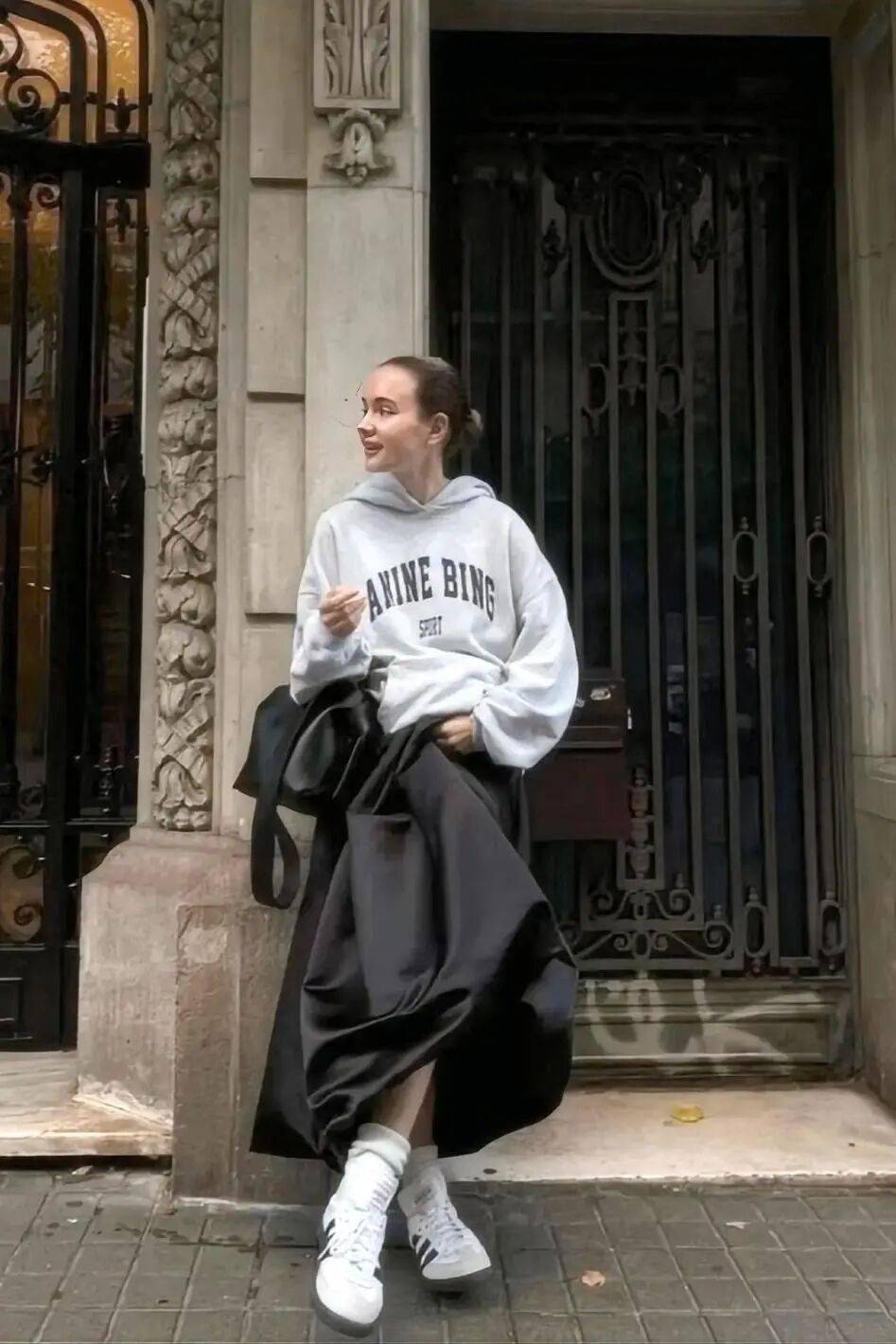 街头穿搭追求舒适与个性的双重奏鸣,中长半身裙与休闲单品的碰撞总能擦出惊喜火花。休闲卫衣/外套搭配中长半身裙,将复古随性与现代潮流巧妙融合。