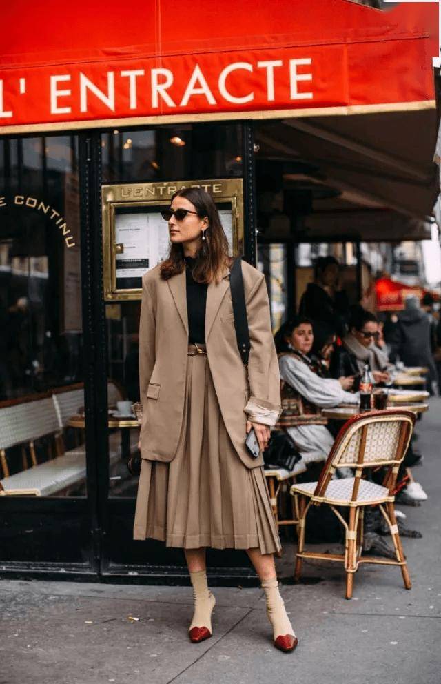 直筒型:垂感面料能纵向拉长身形,避免显臃肿,搭配短款上衣更能优化身材比例。