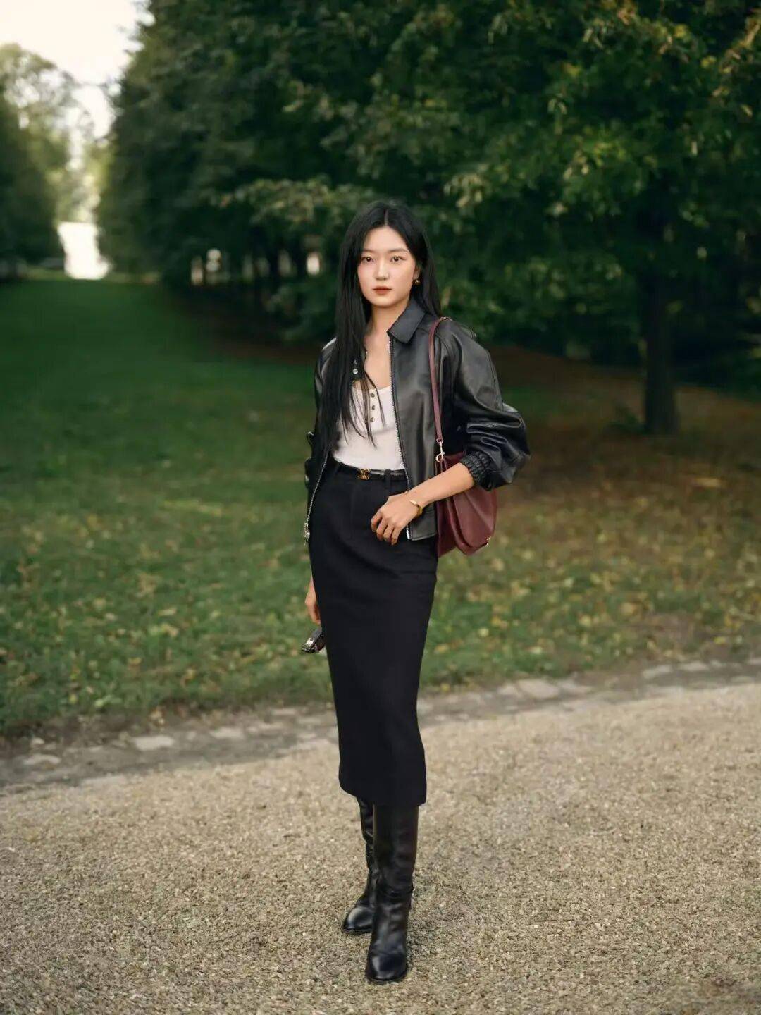 中长半身裙的超强适配性是其风靡的关键。职场中,短款上衣或衬衫搭配高腰铅笔中长裙,选垂感佳的羊毛混纺或软皮质,经典基础色营造沉稳干练气质,还能修饰不同身材。约会时,Oversize上衣搭配真丝或纱质中长裙,利用面料光泽和裙摆摇曳营造浪漫氛围。街头风里,休闲卫衣/外套与之碰撞,Oversize外套弱化短板,挺括牛仔面料增加造型感,展现舒适与个性。