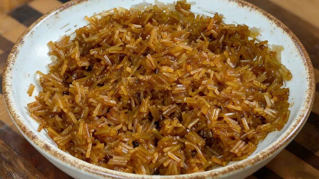 4,半碗粉条碎,提前10分钟加入开水浸泡,泡软后沥干水分,加一点点油防粘,再加适量老抽,搅拌上色,这样好看又好吃。