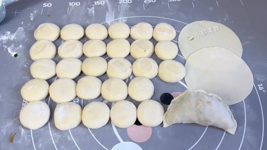 6,醒好的面团不用再揉了,切成两份,再分别搓成长条,切成比水饺大一些的面剂子,皮擀薄一些,才会柔软筋道,凉了也不硬。