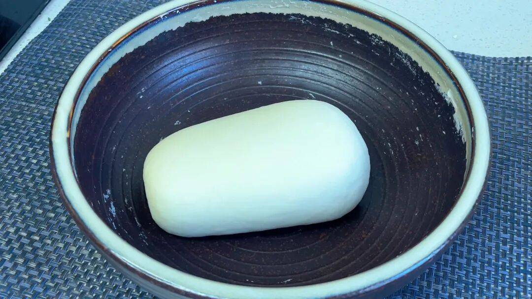 1,和我面。300克普通面粉,160克五六十度的热水,搅成面絮,揉成面团。盖盖松弛5分钟,把面团揉光滑,盖盖醒面备用。