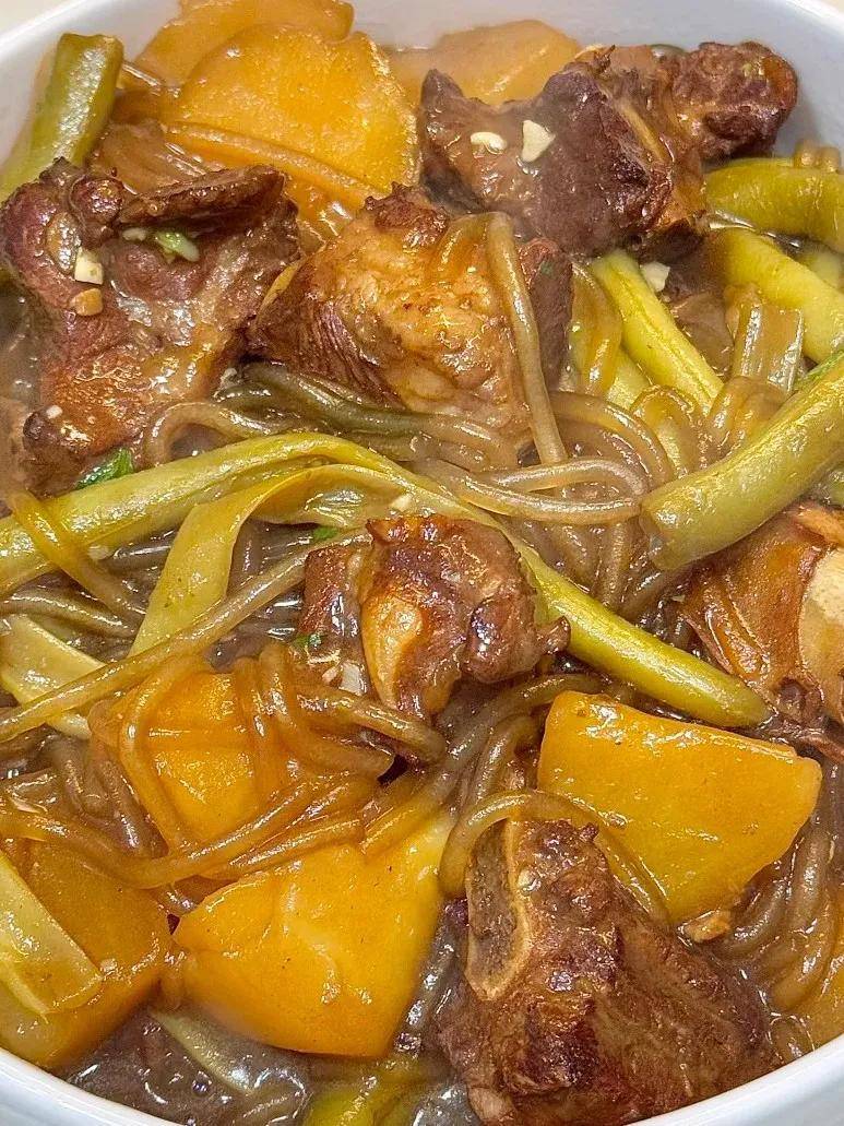 第二道菜就是炖排骨,小时候吃肉的时候还是比较少的,所以特别喜欢吃炖排骨,现在也爱吃,尤其是精排骨,一啃都脱骨的那种,炖上东北的特色油豆角,简直太好吃了,年夜饭也是必备的一道菜,年年不换样