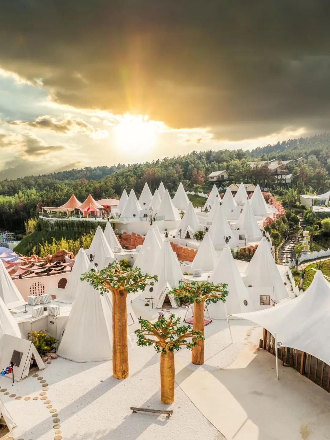 住宿选择:特色民宿+露营体验,贴近自然。银杏山庄、野谷境等民宿兼具舒适与格调,部分房间带庭院、茶歇区,团建后可围坐茗茶夜谈;露营地帐篷住宿沉浸式感受山野夜晚。
