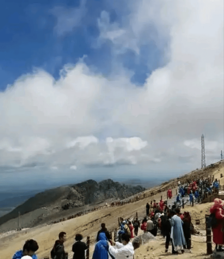 乘景区交通车上山,也分两个阶段,第一段坐的大巴,缓行在森林覆盖的缓坡上,路办针阔叶树种混杂,层林尽染,色彩斑斓。行至山中间,又换上了越野吉普,山路也变的陡峭起来,沿着按有护栏的山路盘旋上行,边上的植被也发生了变化,先是由针阔混交变成了白桦林,接办白桦林由高大挺拔变成了曲矮弯曲,最后都成了枯黄的苔藓地。短短的不到一个小时的时间,就经历了这三个植被带。