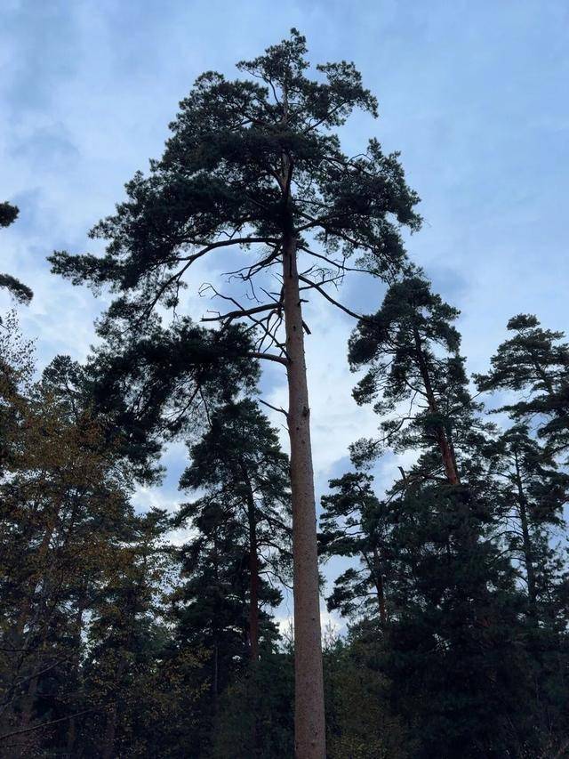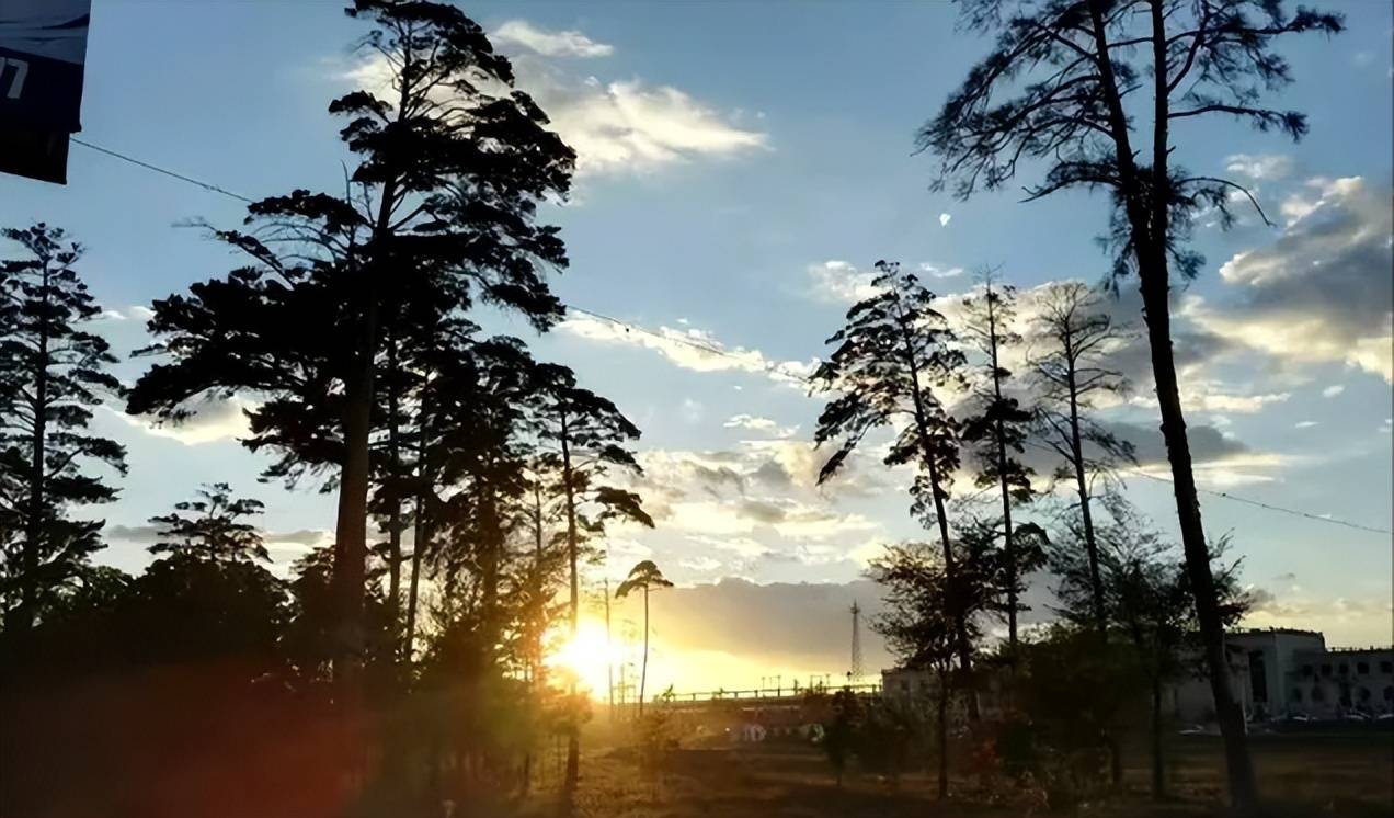 二道白河的美人松,上午由此经过时,表弟告诉我们这就是美人松。就是在这里,二道白河火车站前,我们与表弟一家道别,他开车回图们市,我们在火车站等车往下一个点,再次走近了这处美人松下。 时已夕阳西下,晚霞下的美人松,更显的高大挺拔,鳞状的树皮光滑斑斓,呈淡红色,远处那些树干都在十几米以上,上面虽树枝稀疏,但形态各异,在晚霞彩云之下更显的婀娜多姿。 车站之前不远处还分布着一片成林的美人松,因植株密集,枝杈不能伸展,反而没有分散的优美。 据说,美人松之所以宝贵,就是因在此地很小的面积内才能生长。离开了这片土壤,便不能成活。